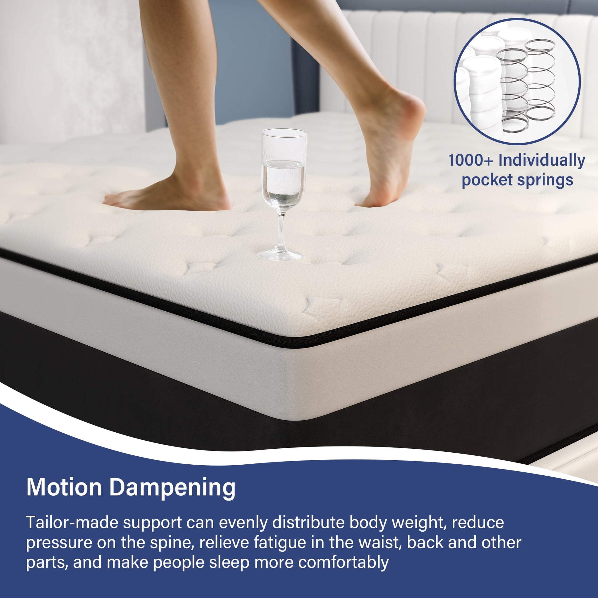 Hybrid Mattress Experience unparalleled comfort and support with our premium Mulinature mattress, designed to transform your sleep into a rejuvenating escape. First, our advanced multi-layer construction combines high-density memory foam and responsive pocket springs to deliver optimal spinal alignment, reducing pressure points and ensuring proper posture throughout the night—say goodbye to morning aches and stiffness. Second, the innovative temperature-regulating technology infused into the foam layers wicks away excess body heat while promoting airflow, keeping you cool in summer and cozy in winter for a consistently comfortable sleep climate. Third, the motion-isolation feature absorbs movement disturbances, making it ideal for couples; you won’t feel your partner tossing and turning, guaranteeing undisturbed rest. Fourth, the hypoallergenic, CertiPUR-US certified materials are free from harmful chemicals, dust mites, and allergens, creating a healthier sleep environment for sensitive individuals or families with children.