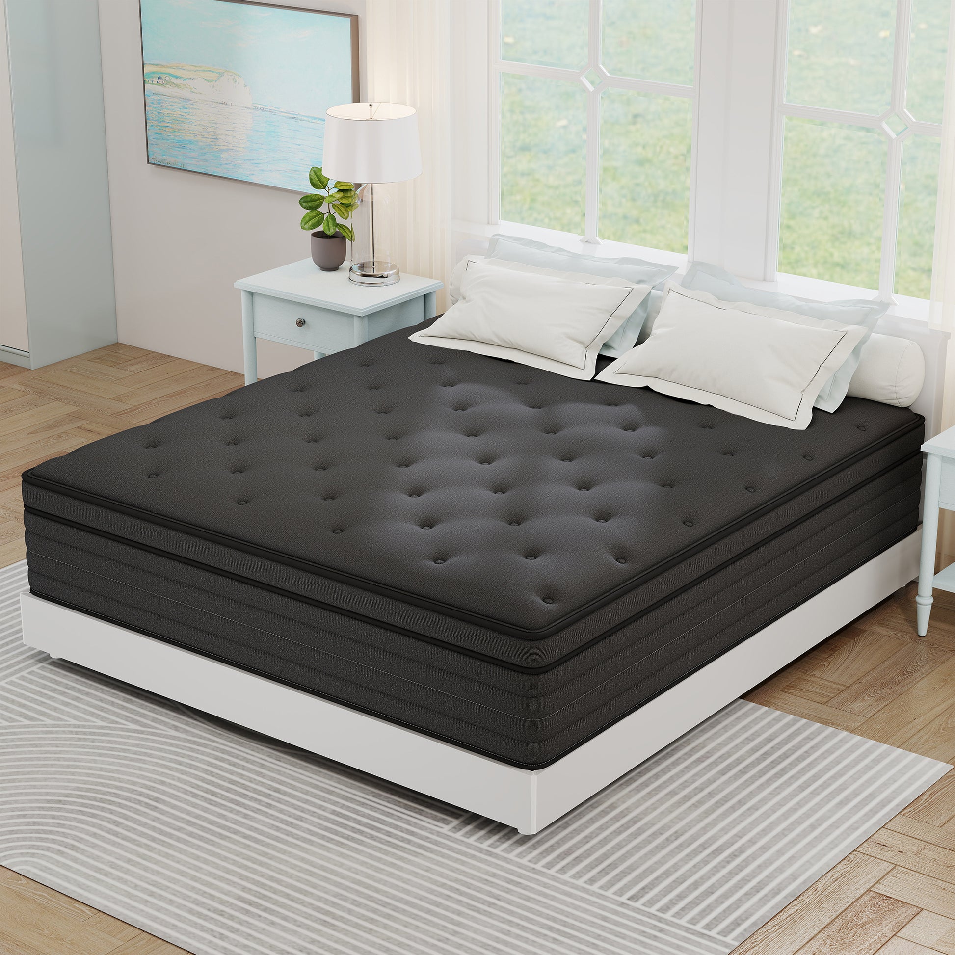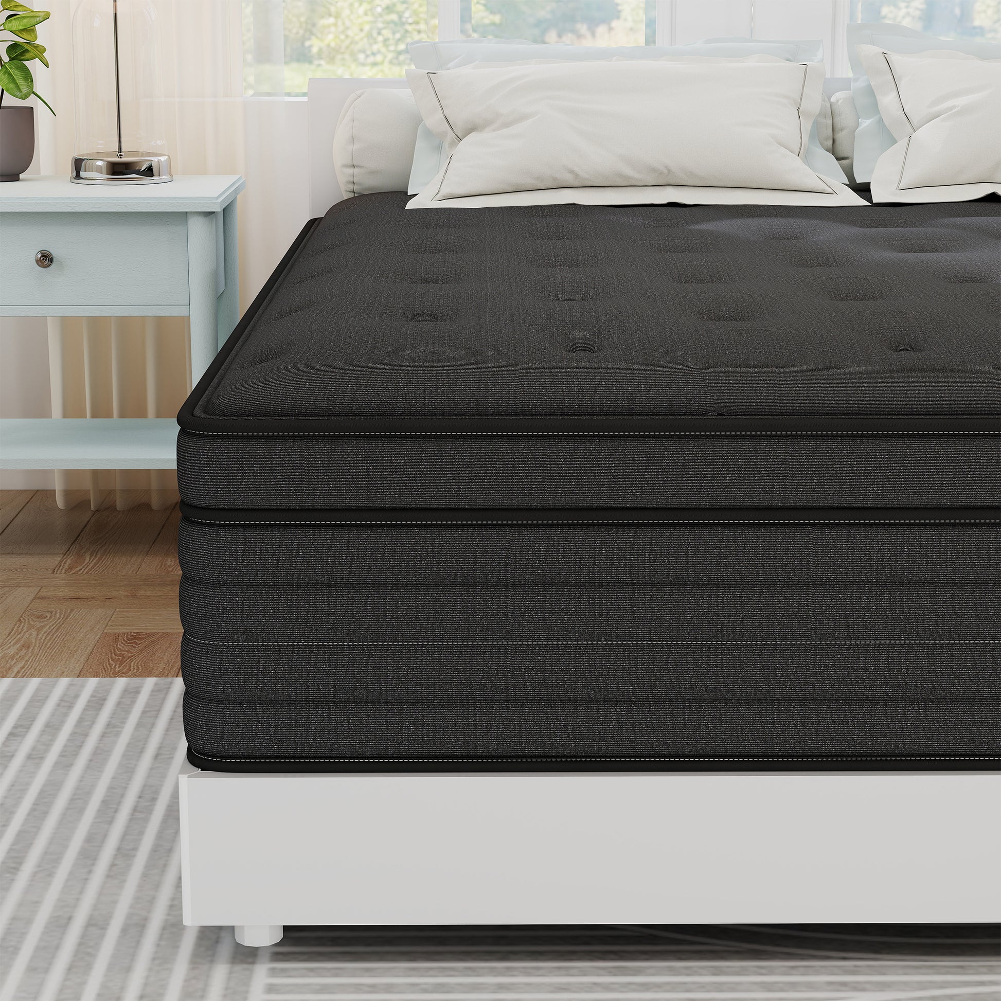 Hybrid Mattress Experience unparalleled comfort and support with our premium Kviwasha mattress, designed to transform your sleep into a rejuvenating escape. First, our advanced multi-layer construction combines high-density memory foam and responsive pocket springs to deliver optimal spinal alignment, reducing pressure points and ensuring proper posture throughout the night—say goodbye to morning aches and stiffness. Second, the innovative temperature-regulating technology infused into the foam layers wicks away excess body heat while promoting airflow, keeping you cool in summer and cozy in winter for a consistently comfortable sleep climate. Third, the motion-isolation feature absorbs movement disturbances, making it ideal for couples; you won’t feel your partner tossing and turning, guaranteeing undisturbed rest. Fourth, the hypoallergenic, CertiPUR-US certified materials are free from harmful chemicals, dust mites, and allergens, creating a healthier sleep environment for sensitive individuals or families with children.